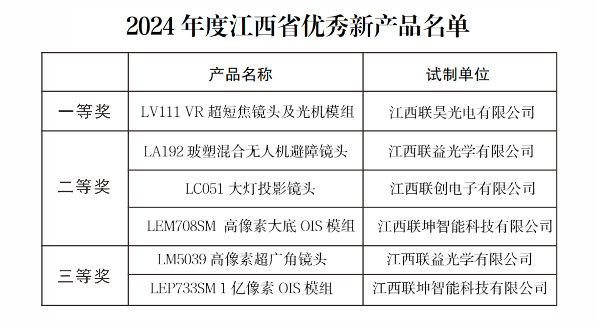 全覆盖!联创电子六款产品上榜江西省优秀新产品名单